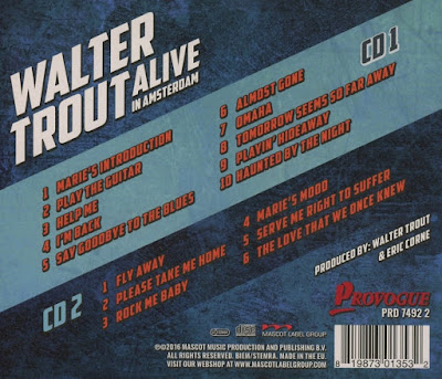 ALIVE in Amsterdam contém canções extraídos de todos os períodos da carreira de cinco décadas de Walter, mas o seu mais recente álbum 'Battle Scars' tem sido o centro da atenção de Walter e tem fascinado os fãs do guitarrista em todo o mundo com suas frases magistrais e estilo único. Walter Trout foi três vezes vencedor do título Overseas Artist Of The Year no British Blues Awards, e três vezes candidato ao Blues Music Awards.